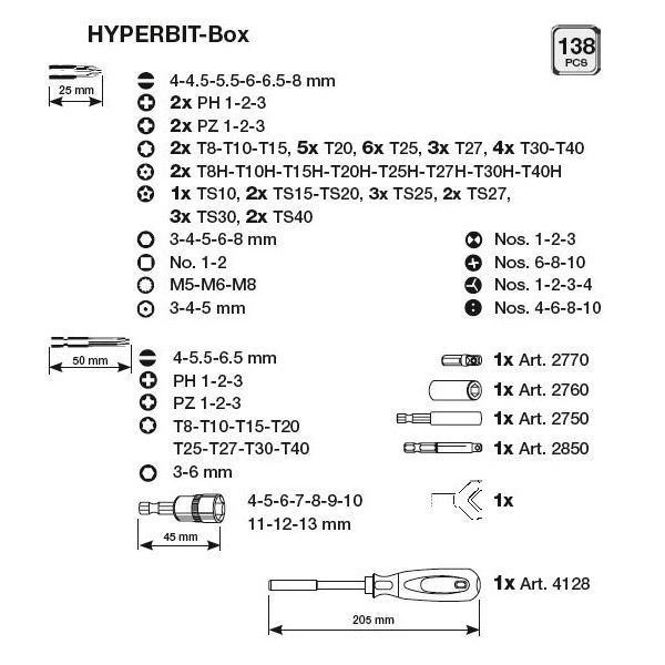- Coffret de 138 embouts de vissage 1/4″ HYPER-Bit.